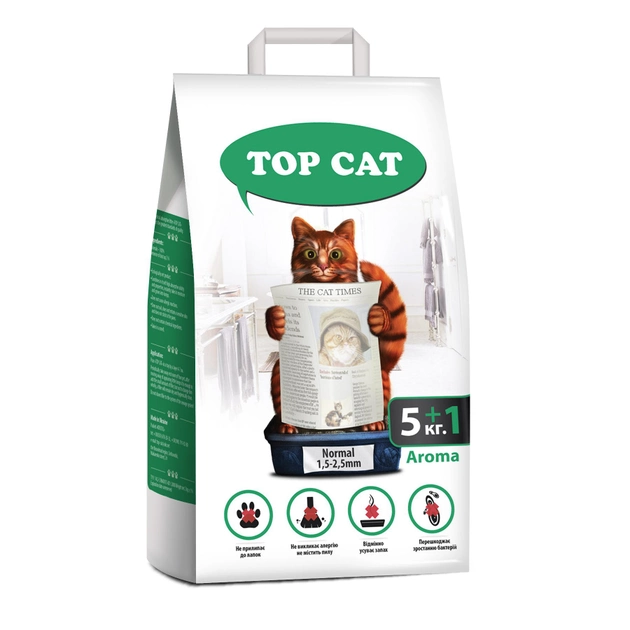 Наповнювач для котячого туалету TOP САТ NORMAL бентонітовий з ароматом лаванди 1.5-2.5 мм 5+1 кг