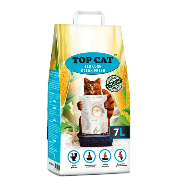 Наповнювач для котячого туалету TOP CAT ECO CORN OCEAN FRESH кукурудзяний з ароматом Океанська свіжість 7 л / 4,3 кг, зробле