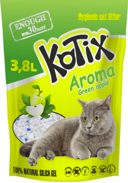 Силікагелевий наповнювач KOTIX Green Apple для котів з ароматом яблука 3.8 л/1.62 кг