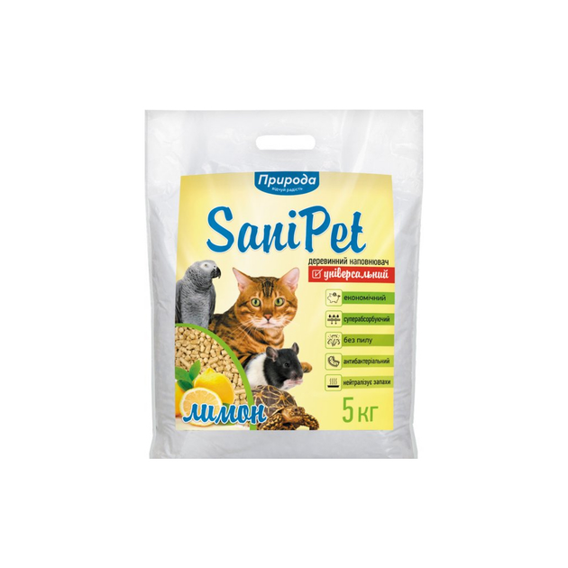 Наповнювач для туалету Природа Sani Pet універсальний деревний (лимон) 5 кг (4823082407927)
