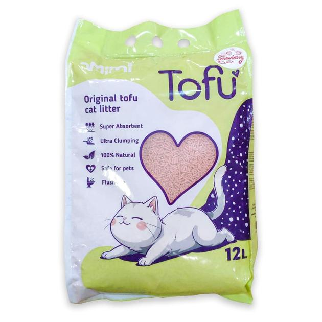 Наповнювач гігієнічний соєвий MiMi CAT TOFU для котячого туалету, з ароматом полуниці 12 л
