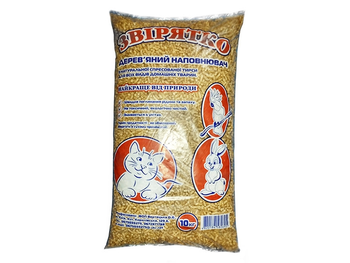 Гігієнічний деревний наповнювач Звірятко, світлий, 10 кг