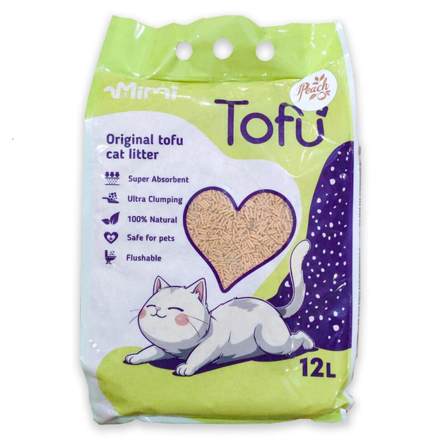 Наповнювач гігієнічний соєвий MiMi CAT TOFU для котячого туалету, з ароматом персика 12 л
