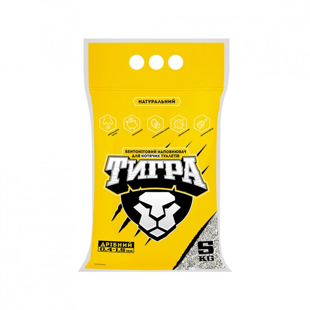 Наповнювач для туалету Тигра бентонітовий 5 кг (дрібна гранула 0.4-1.5 мм) (5200) (200125)
