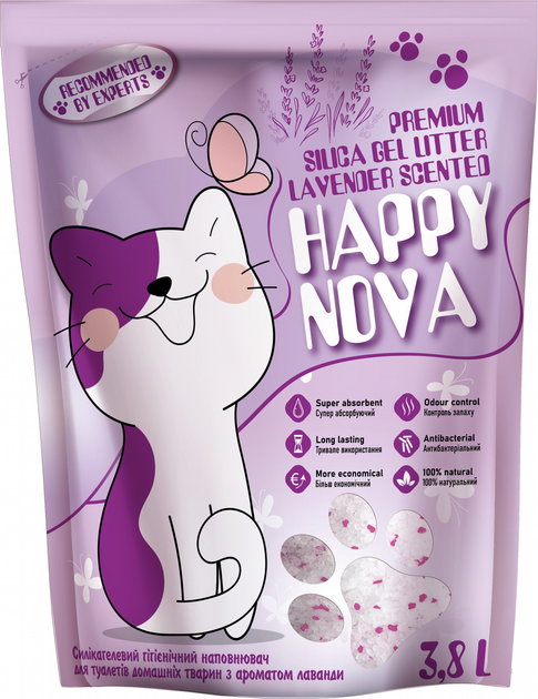 Котячий наповнювач Happy Nova силікагелевий лаванда 3.8 л