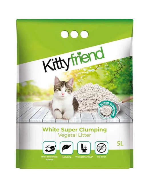 Рослинний наповнювач для котячого туалету комкуючий змивний Kittyfriend White Super Clumping Vegetal Litter 5 л - 2,3 кг