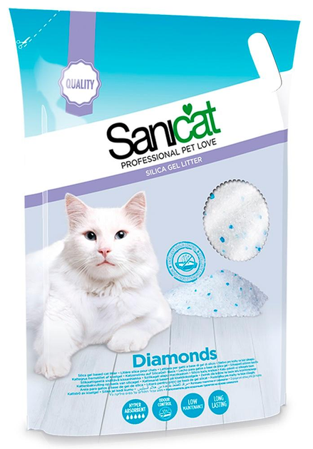 Силікагелевий наповнювач для котячого туалету поглинаючий без аромату Sanicat Diamonds Fragrance Free 5 л - 2,3 кг