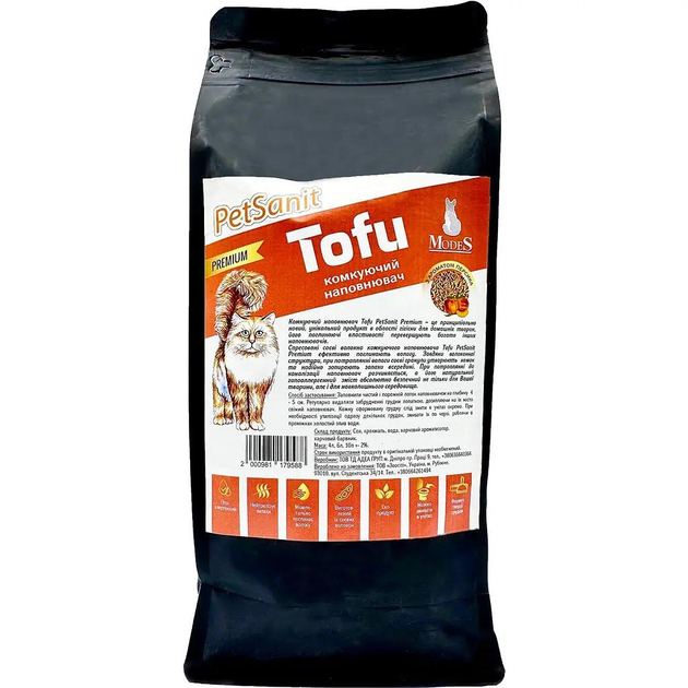Наповнювач гігієнічний соєвий Modes PetSanit Tofu Premium з ароматом персика для котів 6 л