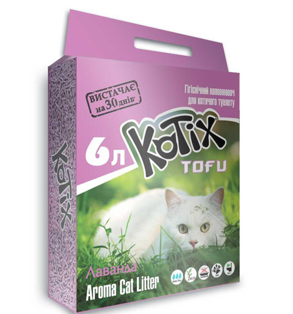 Наповнювач для котячого лотка KOTIX TOFU дерев'яний 6 л аромат лаванда