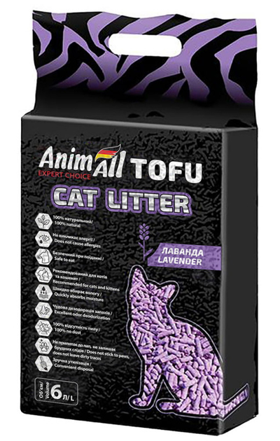 AnimAll Тофу з ароматом лаванди наповнювач туалетів для кішок, 2.6 кг, 6 л