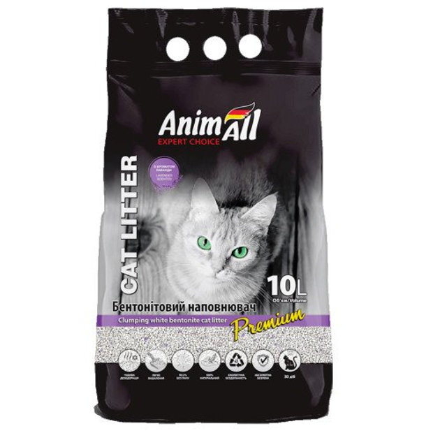 Бентонітовий наповнювач AnimAll Premium Lavender з ароматом лаванди, для котячого туалету, 10 л