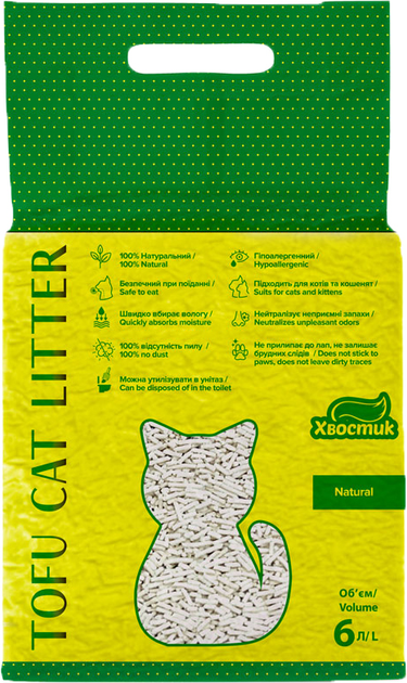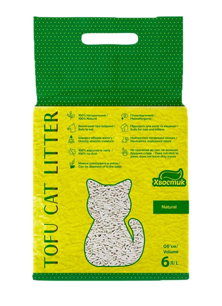 Соєвий наповнювач для котячого туалету Хвостик Тофу Класік без аромату, 2,6 кг/6 л