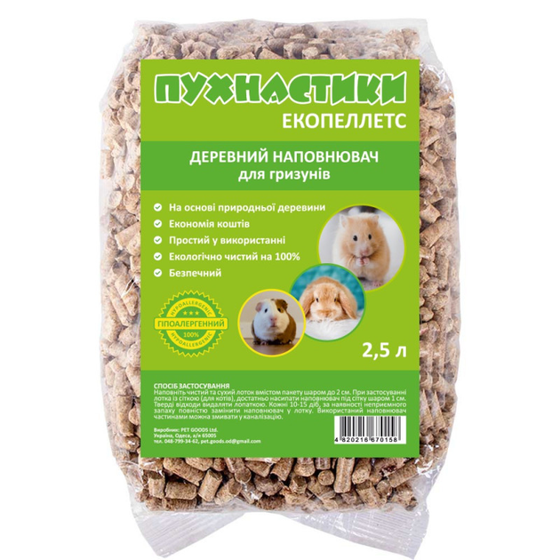 Гранульований деревний наповнювач для гризунів і птахів Пухнастики 10 уп*0,8 кг