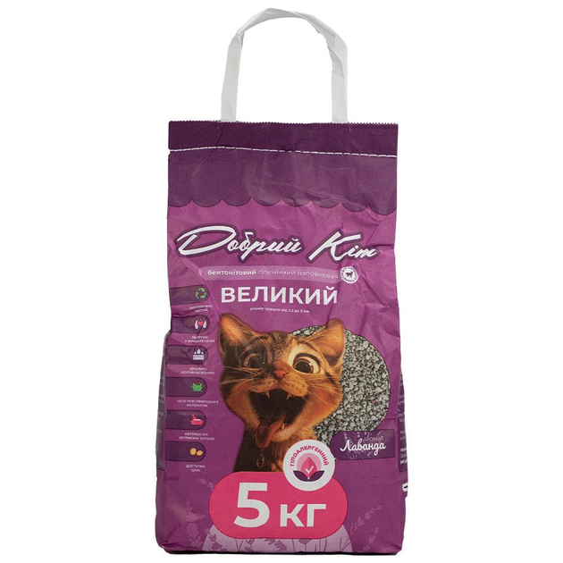Бентонітовий наповнювач туалету для котів великий з лавандою "Добрий Кіт" 4 шт/5 кг