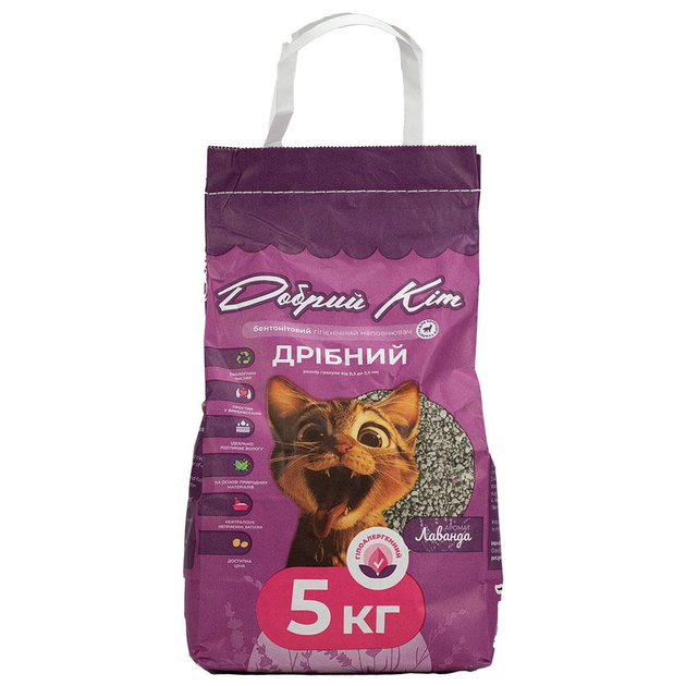 Бентонітовий наповнювач туалету для котів дрібний з лавандою "Добрий Кіт" 4 шт/5 кг