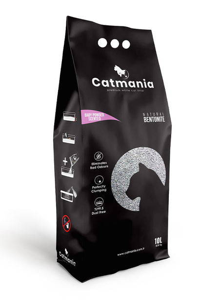 Наповнювач бентонітовий Catmania для котячого туалету, білий з карбоновим ефектом 10 л