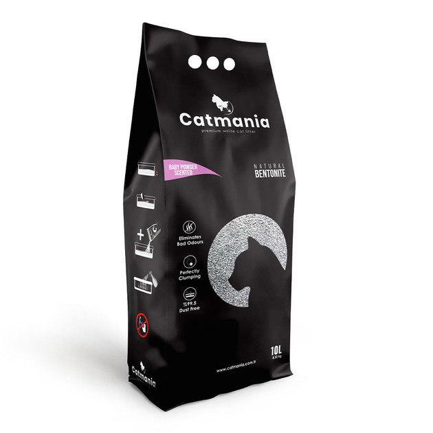 Бентонітовий наповнювач CATMANIA для котячого туалету з ароматом дитячої присипки та рожевими гранулами 10 л (8682162004052)
