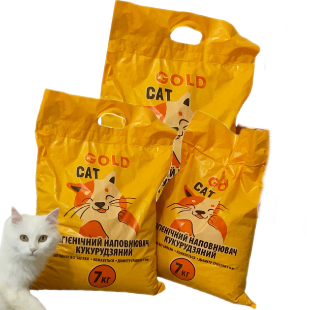 Кукурудзяний наповнювач для котячого туалету комкується GoldCat 7кг х 3