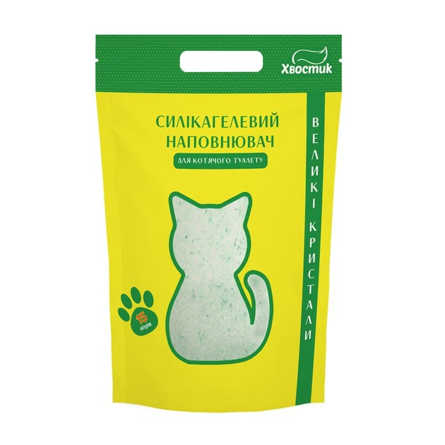 Наповнювач силікагелевий Хвостик із зеленими гранулами для котячого туалету великий 15л