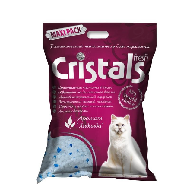 Наповнювач силікагелевий для котячого туалету з лавандою 14 л CRISTALS Fresh