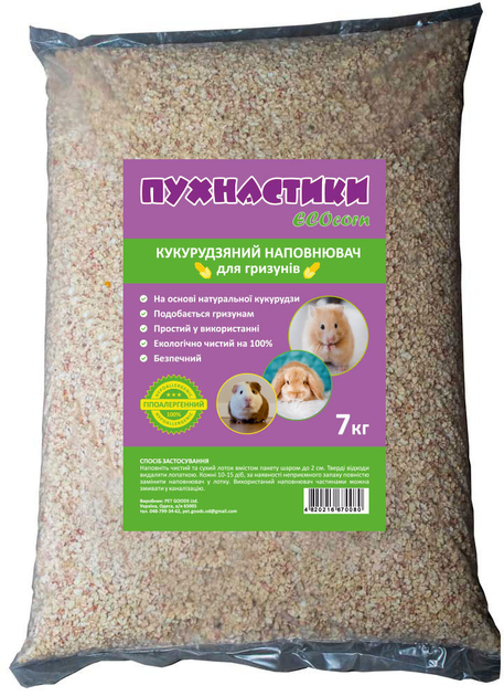 Наповнювач кукурудзяний для гризунів Пухнастики ECOcorn 7 кг (4820216670080)