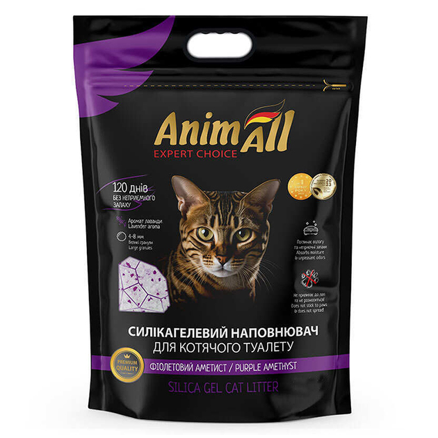 Силікагелевий наповнювач для котів AnimAll Purple Amethyst "Фіолетовий аметист" 15 л