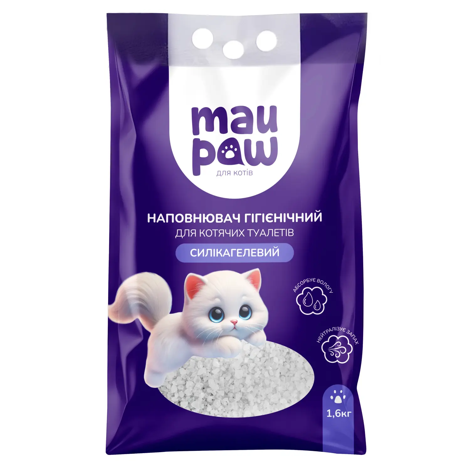 Наповнювач гігієнічний силікагелевий MAU PAW для котячих туалетів 3.8 л 1.6 кг 1-8 мм (973575)