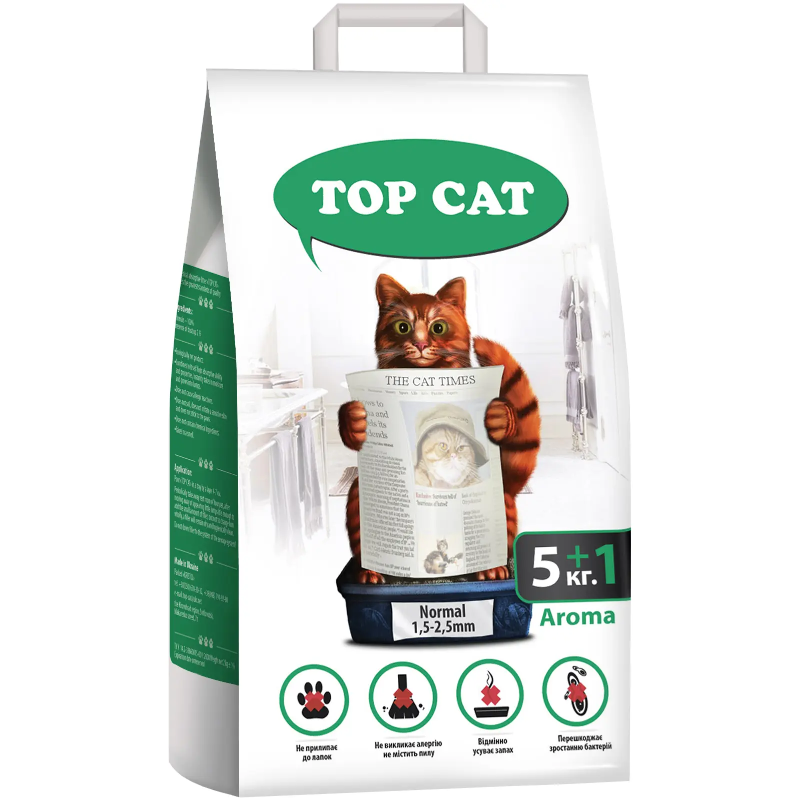 Наповнювач для котячого туалету Top Cat Normal бентонітовий 1.5-2.5 мм з ароматом лаванди 5 + 1 кг