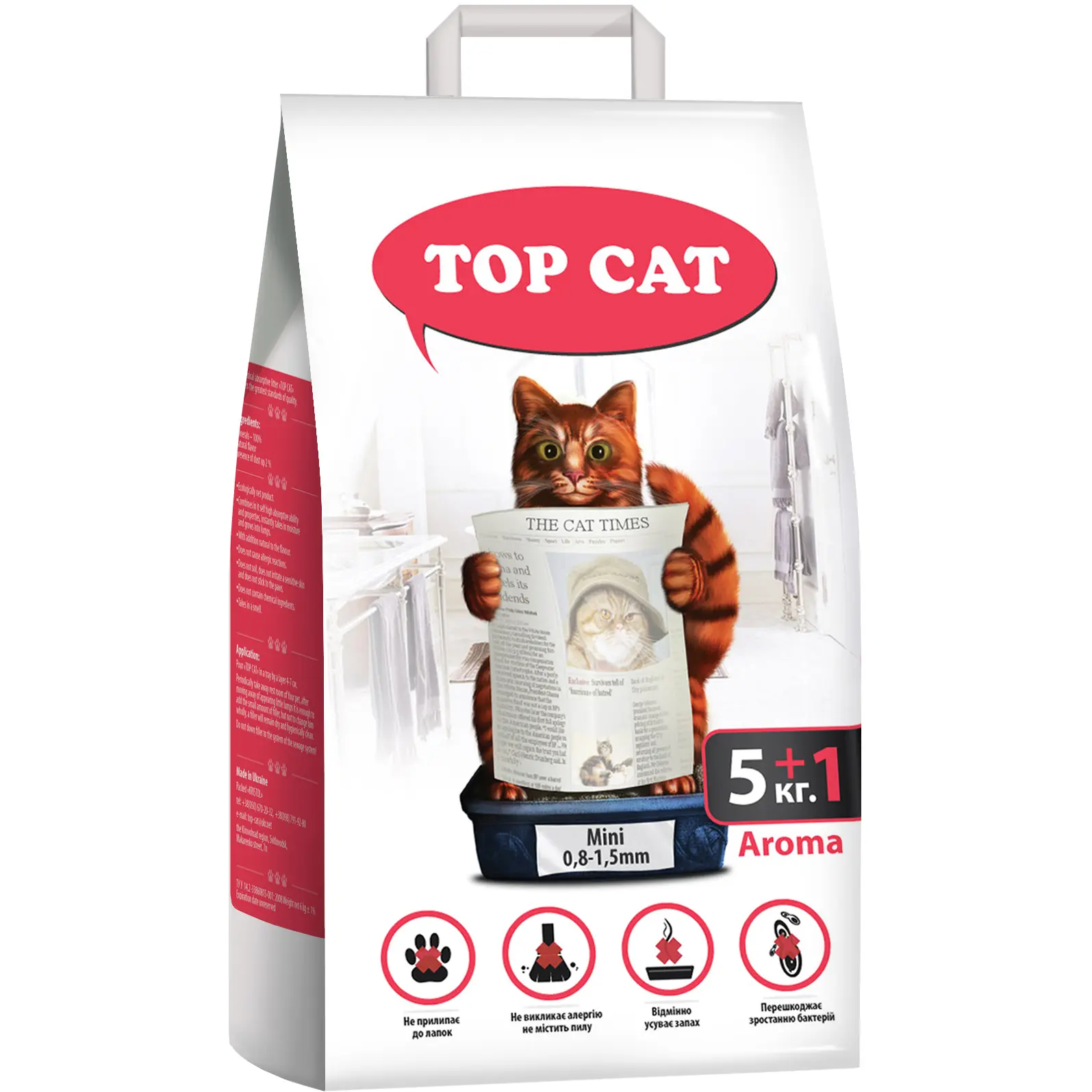 Наповнювач для котячого туалету Top Cat Мini бентонітовий 0.8-1.5 мм з ароматом лаванди 5 + 1 кг