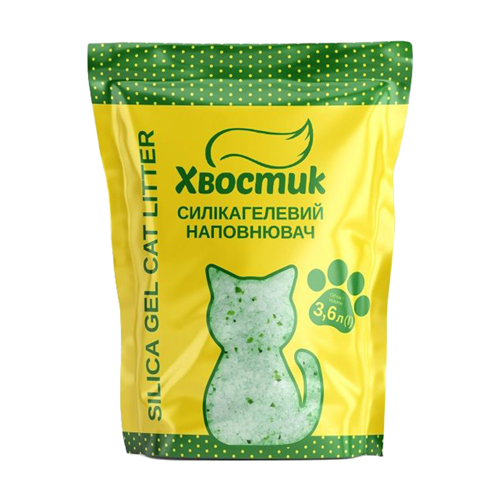 Силікагелевий наповнювач для котячого туалету Хвостик дрібний, із зеленими гранулами, 3.6 л
