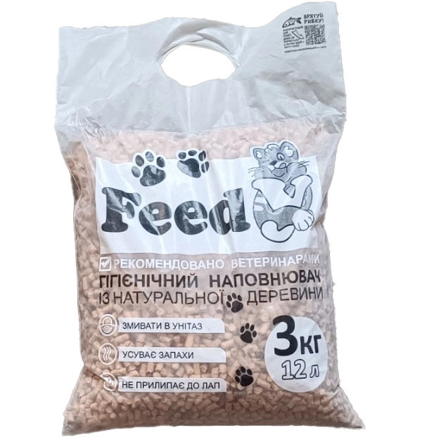 Дерев'яний наповнювач світлий Feedy для котів, гризунів та птахів 3 кг