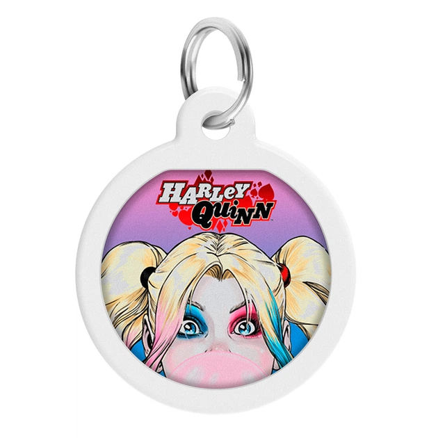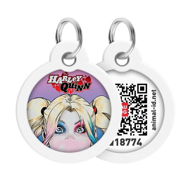 Адреса для собак і котів металевий WAUDOG Smart ID з QR паспортом, малюнок "Харлі Квін", коло, Д 30 мм