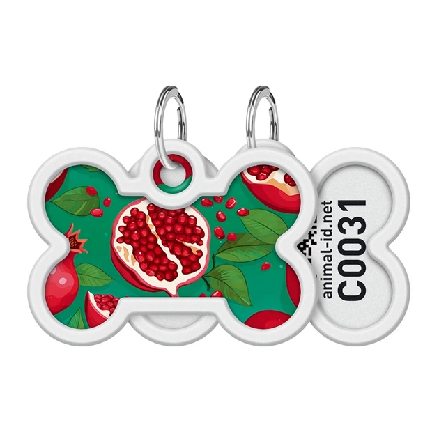Адреса для собак та котів металевий WAUDOG Smart ID c QR паспортом, малюнок "Гранати", кістка, Д 40 мм, Ш 28 мм