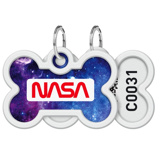 Адреса для собак і котів металевий WAUDOG Smart ID з QR паспортом, малюнок "NASA21", кістка, Д 40 мм, Ш 28 мм