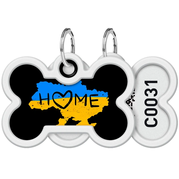 Адресник для собак і котів металевий WAUDOG Smart ID з QR паспортом, малюнок "Прапор", кістка, Д 40 мм, Ш 28 мм