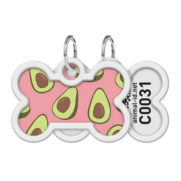 Адреса для собак та котів металевий WAUDOG Smart ID c QR паспортом, малюнок "Авокадо 2", кістка, Д 40 мм, Ш 28 мм