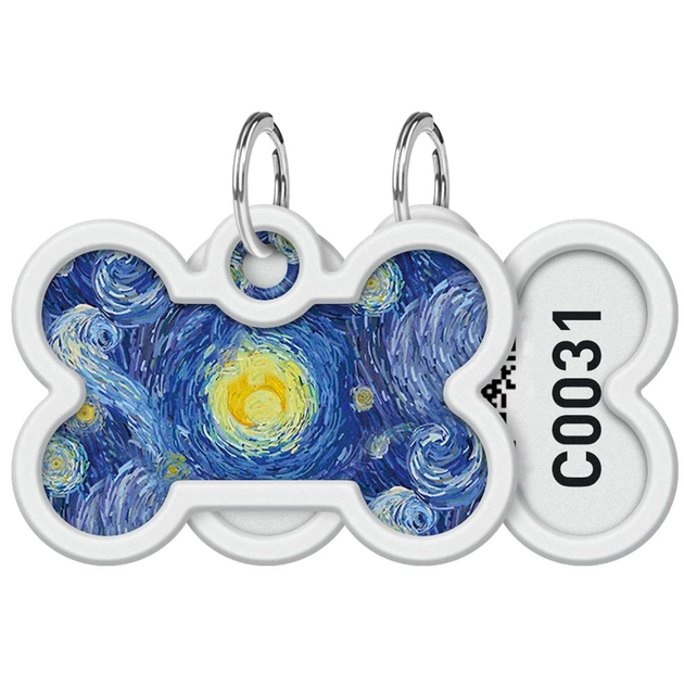 Адресник для собак і котів металевий WAUDOG Smart ID з QR паспортом, малюнок "NASA21", кістка, Д 40 мм, Ш 28