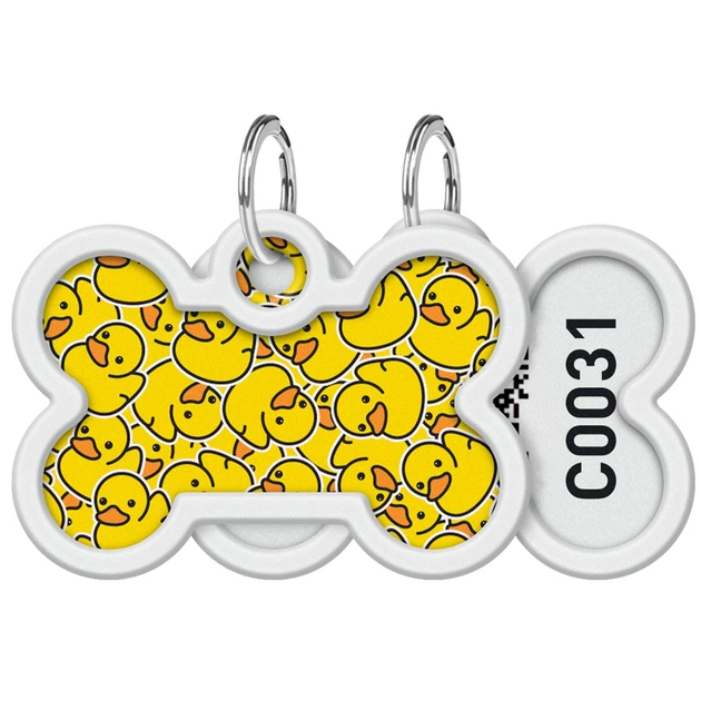 Адресник для собак і котів металевий WAUDOG Smart ID з QR паспортом, малюнок "Качечки", кістка, 40х28 мм (0640-0204)