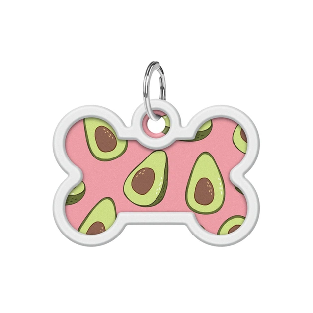 Адресник для собак і котів металевий WAUDOG Smart ID з QR паспортом, малюнок "Авокадо 2", кістка, Д 40 мм, Ш 28 мм