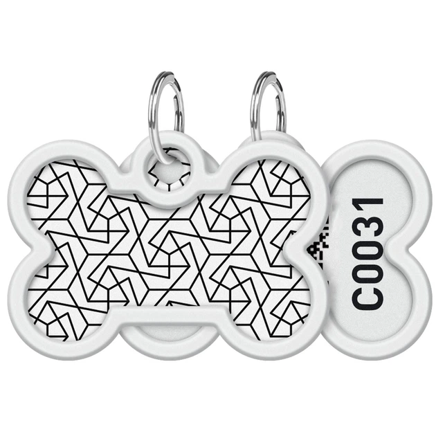 Адресник для собак і котів металевий WAUDOG Smart ID з QR паспортом, малюнок "Геометрія", кістка, 40х28 мм (0640-0202)