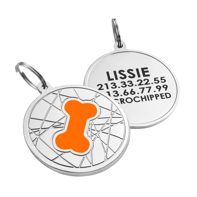 Емальований Адресник для Собак BronzeDog з Гравіюванням Кісточка на Тлі Об'ємної Павутинки Помаранчевий 25 мм (92114)