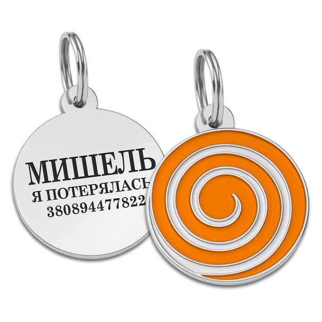 Адресник для Собак Емальований BronzeDog з Гравіруванням "Льодяник" Помаранчевий 28 мм (94814)