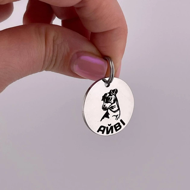 Адресник для кота або собаки з кличкою «Айві», форма ''Коло'' 2,5 см, колір срібло, полірована нержавіюча сталь (індивідуаль