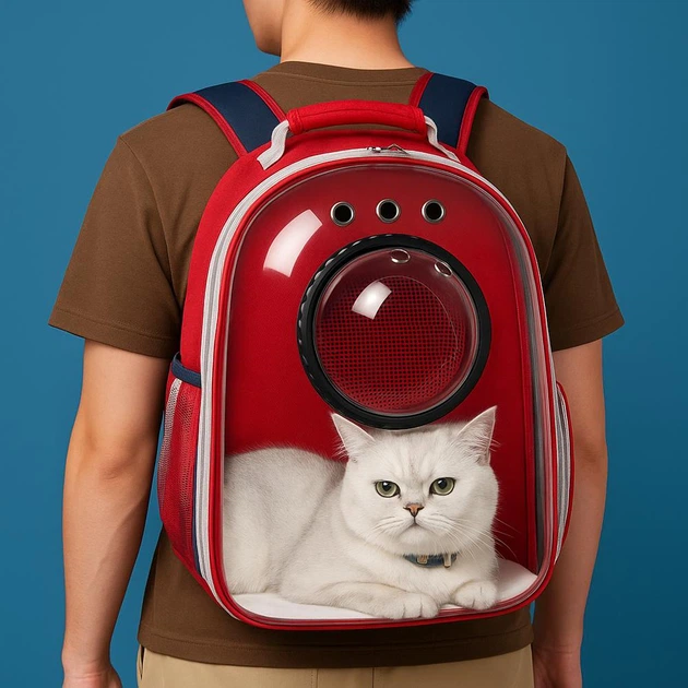 Рюкзак переноска для кота з віконцем та прозорою стінкою, 42x35x22 см, Червоний (Переноска для тварин)