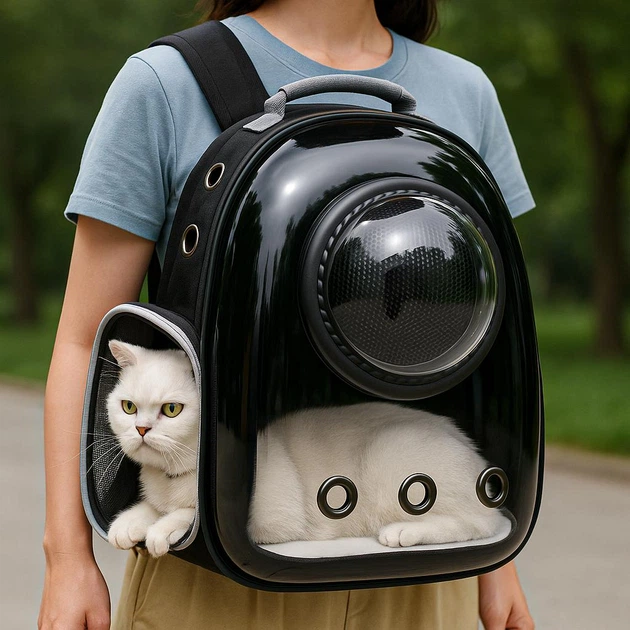 Рюкзак переноска для кота з віконцем та прозорою стінкою, 42x35x22 см, Чорний (Переноска для тварин)