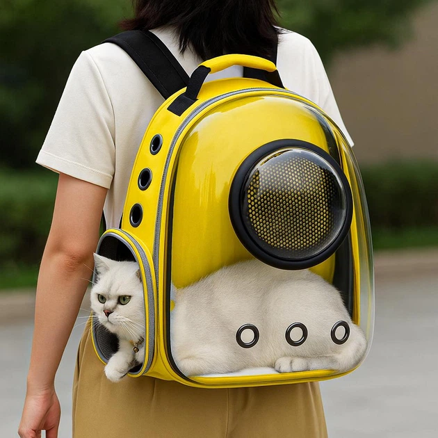 Рюкзак переноска для кота з віконцем та прозорою стінкою, 42x35x22 см, Жовтий (Переноска для тварин)