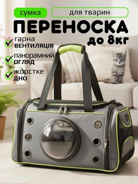 Сумка переноска для кота кішки собаки домашніх тварин до 8 кг з віконцем ілюмінатором і ремінцем на плече котячі сумки для п
