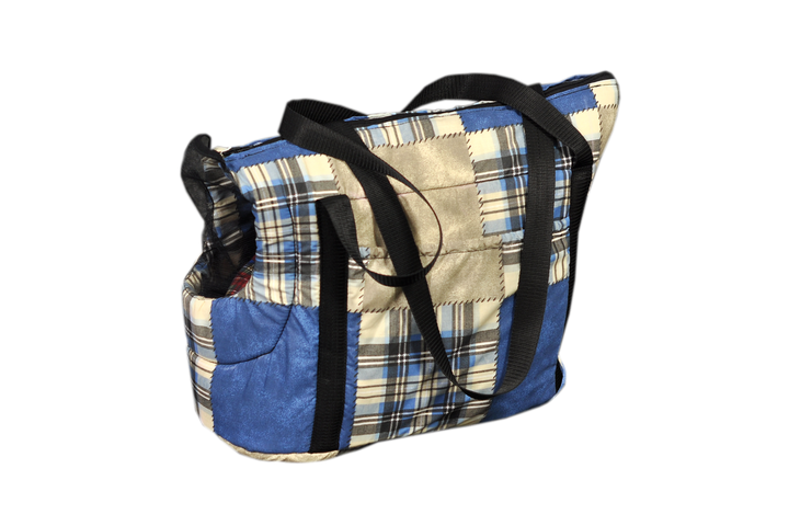 Сумка переноска для собак і кішок Мур-Мяу 35х40х22 см Синя в клітинку