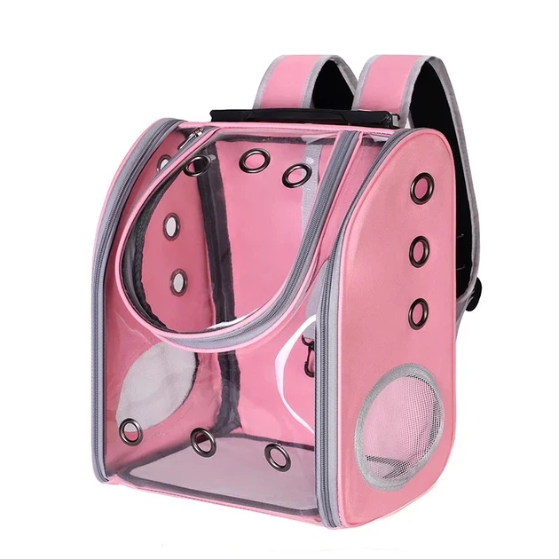 Прозорий Рюкзак Переноска Для Прогулянок Котів та Маленьких Собак з Ілюмінатором До 7 кг Розовий