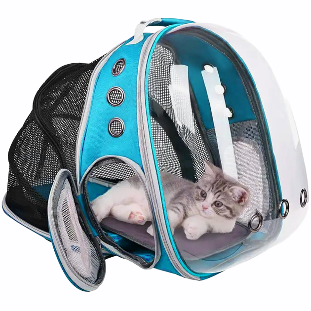 Рюкзак переноска для тварин CosmoPet розсувний для котів та собак 39x34x21 см Синій JDT-0848350